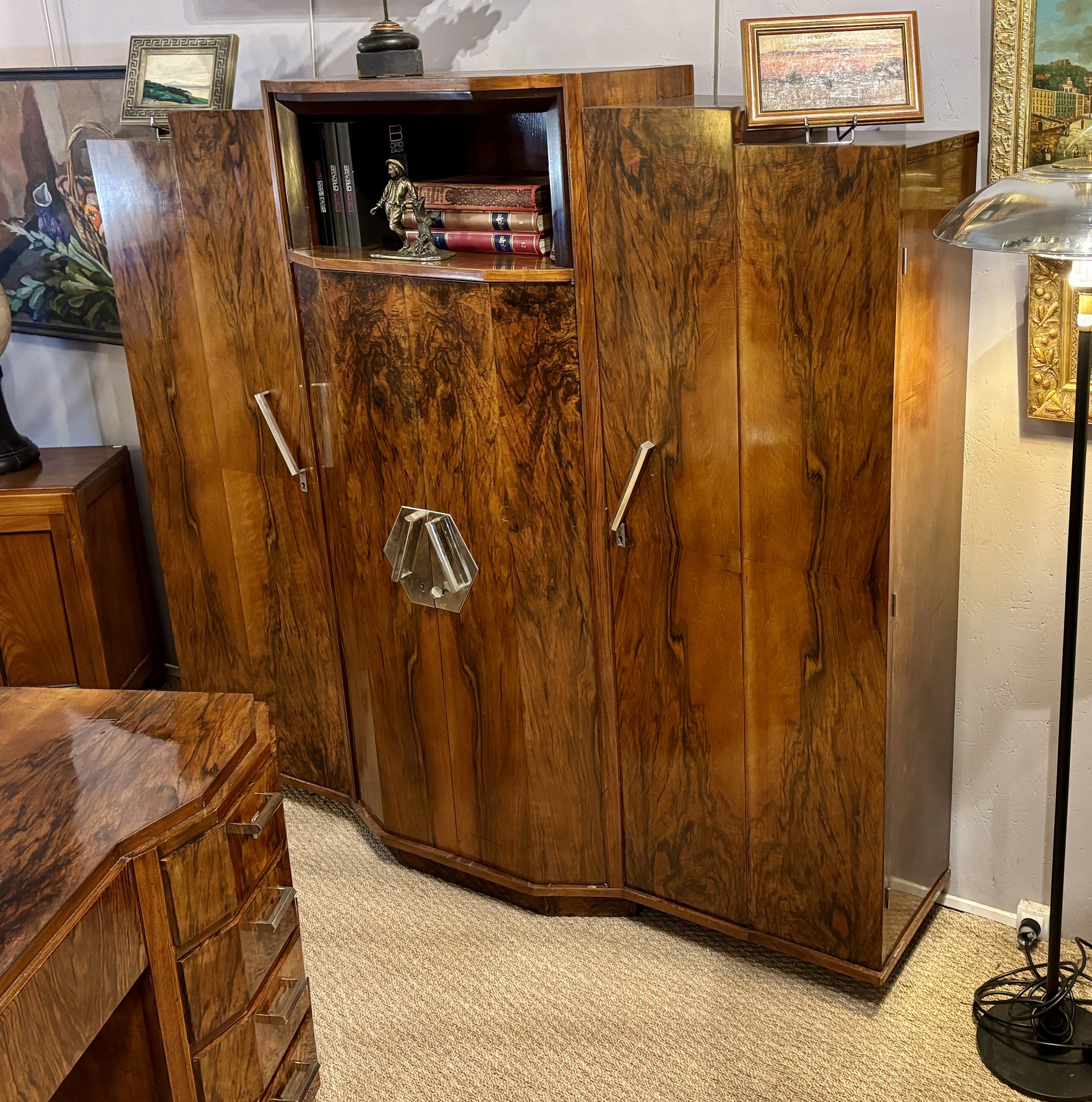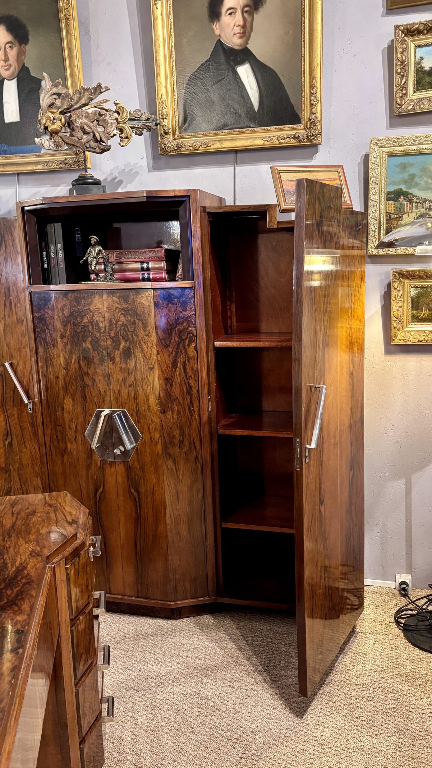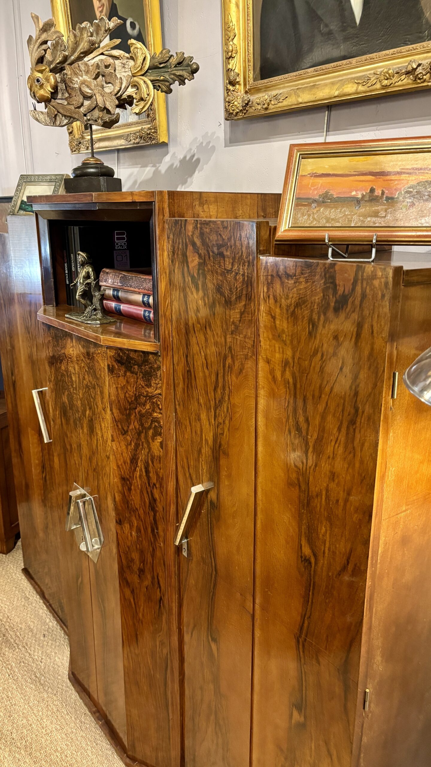 Armoire Art Déco en loupe de noyer, années 1930