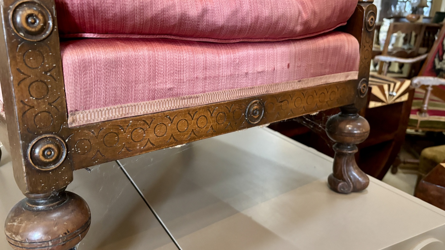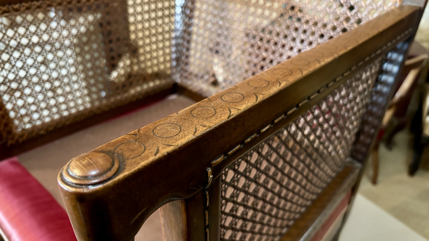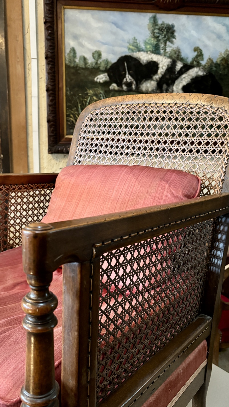 Dossier et assise sont cannés, tandis que le bâti en bois sculpté emprunte au style Chippendale. Si l’assise n’a pas été refaite, elle demeure cependant confortable et en très bon état. Idéal pour un salon, un jardin d’hiver ou une terrasse à l’automne ou au printemps, ce fauteuil est en très bon état général.