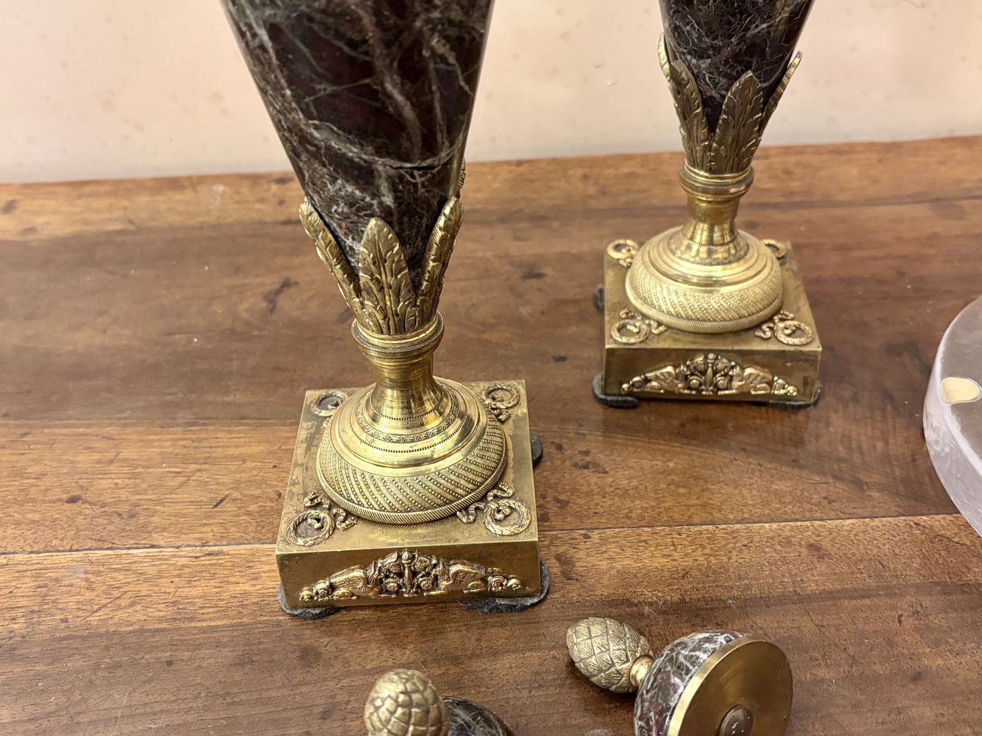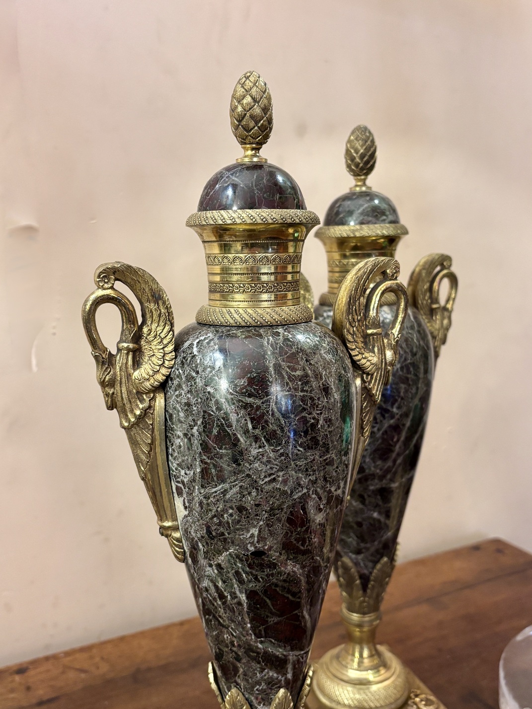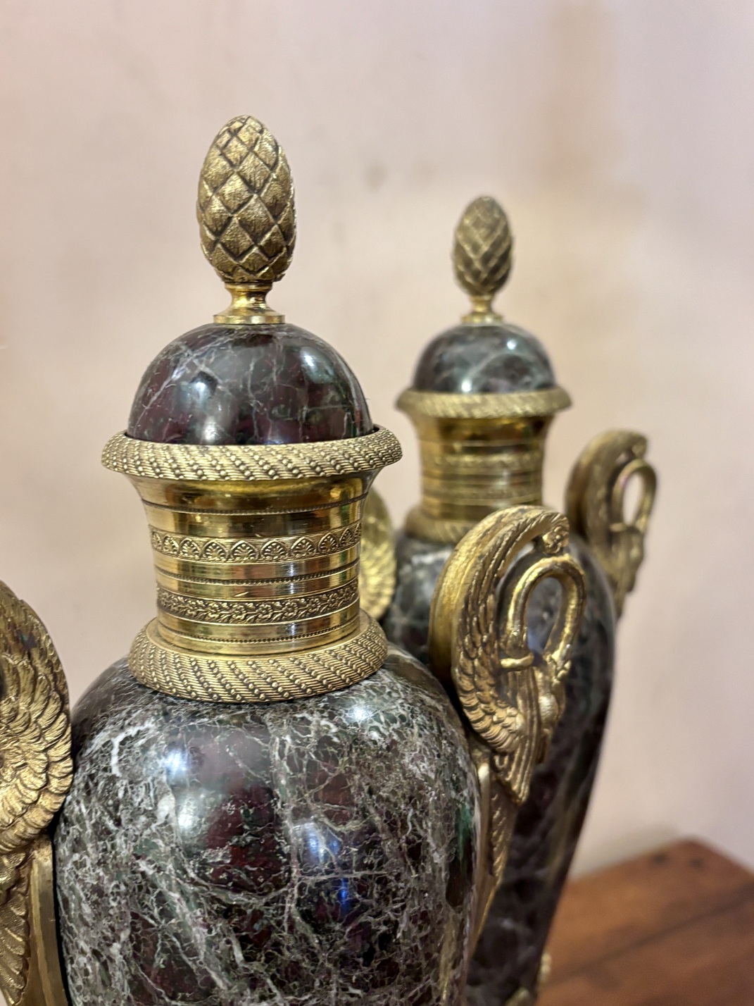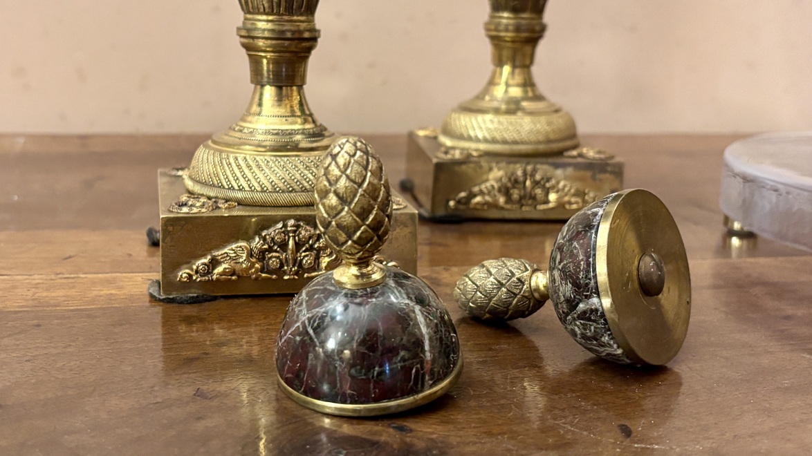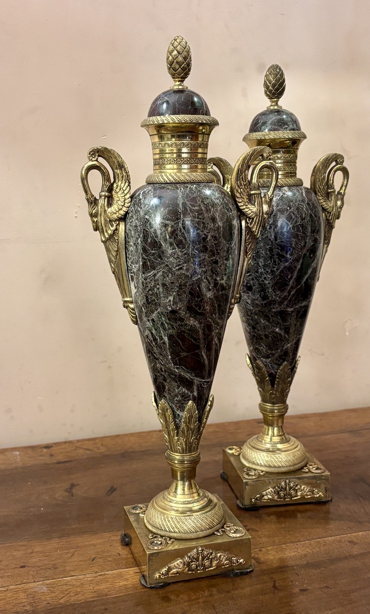 Urnes couvertes en marbre et bronze doré, style néoclassique, XIXe siècle